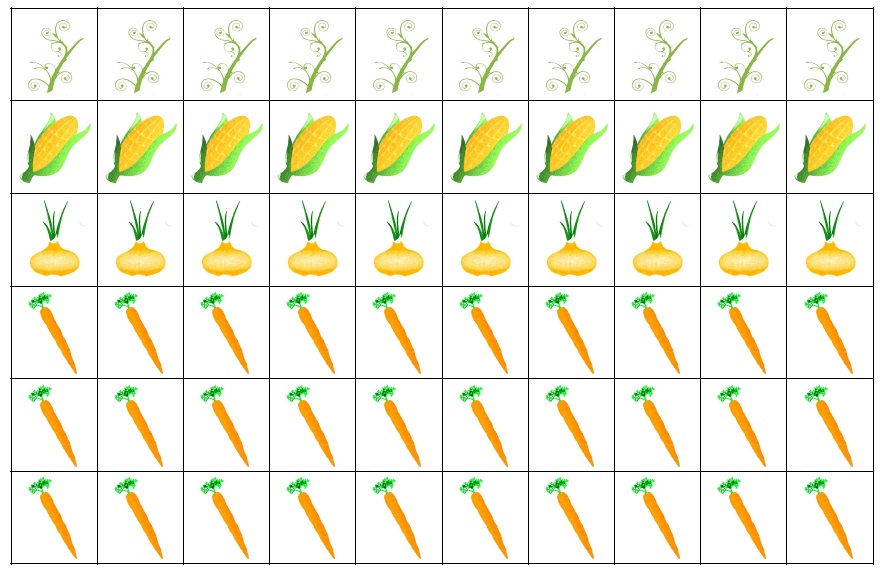 Gracze zaczynają z dowolnego pola z symbolem rośliny. Rozpoczyna osoba, która wyrzuci najwięcej oczek. Gracze poruszają się przesuwając pionek wzdłuż niebieskich linii o tyle pól (roślin), ile oczek wypadnie na kostce (niebieskich kresek nie liczy się jako pól). Kierunek ruchu wybiera się po rzucie i nie można go zmienić w tej kolejce (nie można 2 razy przejść po tej samej linii w jednej kolejce). Po zatrzymaniu się na polu z rośliną gracz bierze żeton z jej symbolem lub nazwą. Jeśli taki symbol nie jest już dostępny (gracze wykorzystali wszystkie) oznacza to, że warzywo nie nadawało się do zebrania np. było zgniłe. Cebulę lub kukurydzę zabierają dla siebie a chwast odkładają na wspólny stos. Po odłożeniu na bok przynajmniej 5 chwastów na planszy zaczyna rosnąć więcej roślin. Gracze od tego momentu biorą po 2 symbole/napisy. Jeśli gracz wyrzuci 6 oczek, to przenosi się na pole handlarza (czerwona lub niebieska postać) i rzuca dwoma kostkami. Mniejsza liczba oznacza liczbę marchewek, które da handlarz w zamian za inne rośliny (większa liczba). Wymienić można jedynie jeden rodzaj roślin. Jeśli wypadną identyczne liczby, to nie można się wymieniać.
